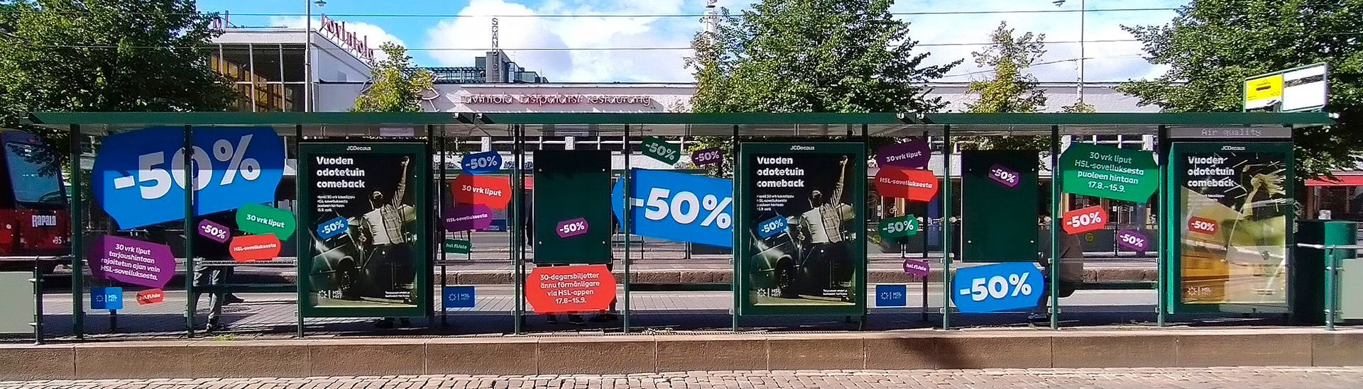 Kanssamme toteutus sujuu ketterästi. Oma henkilökuntamme hoitaa julisteiden ja tarrojen asennukset kaikkina vuorokaudenaikoina.
