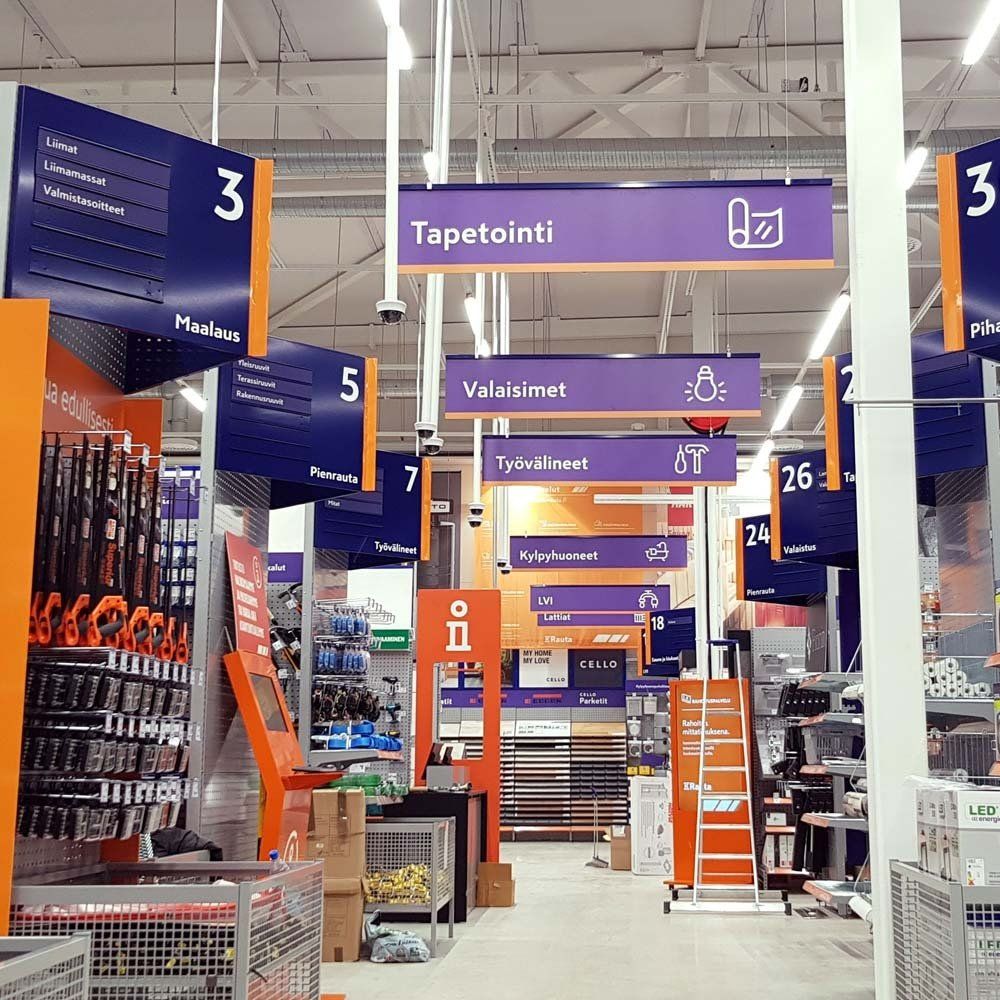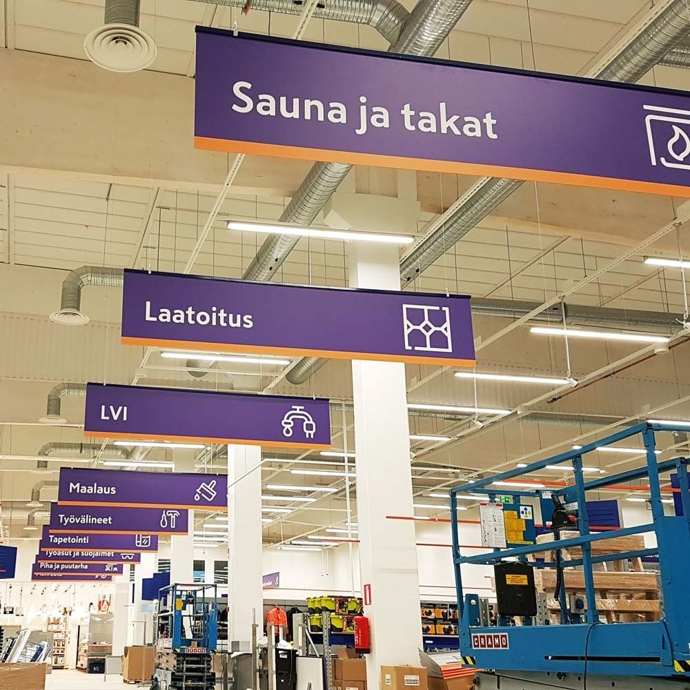 Myymäläilmeen ja opasteiden toteutukset