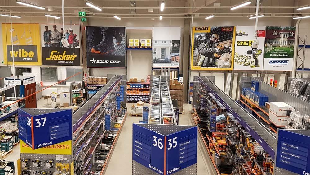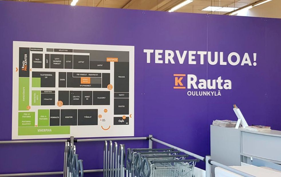Toteutamme myymäläilmeitä käyttämällä useita eri materiaaleja. Saat samasta paikasta suuret tasotulosteet, pienemmät imagokuvat, hyllymoduulikohtaiset opasteet ja tuotekorttien yksityiskohdat. Tulostetut magneettivuodat ovat myymälämarkkinoinnissa tätä päivää.